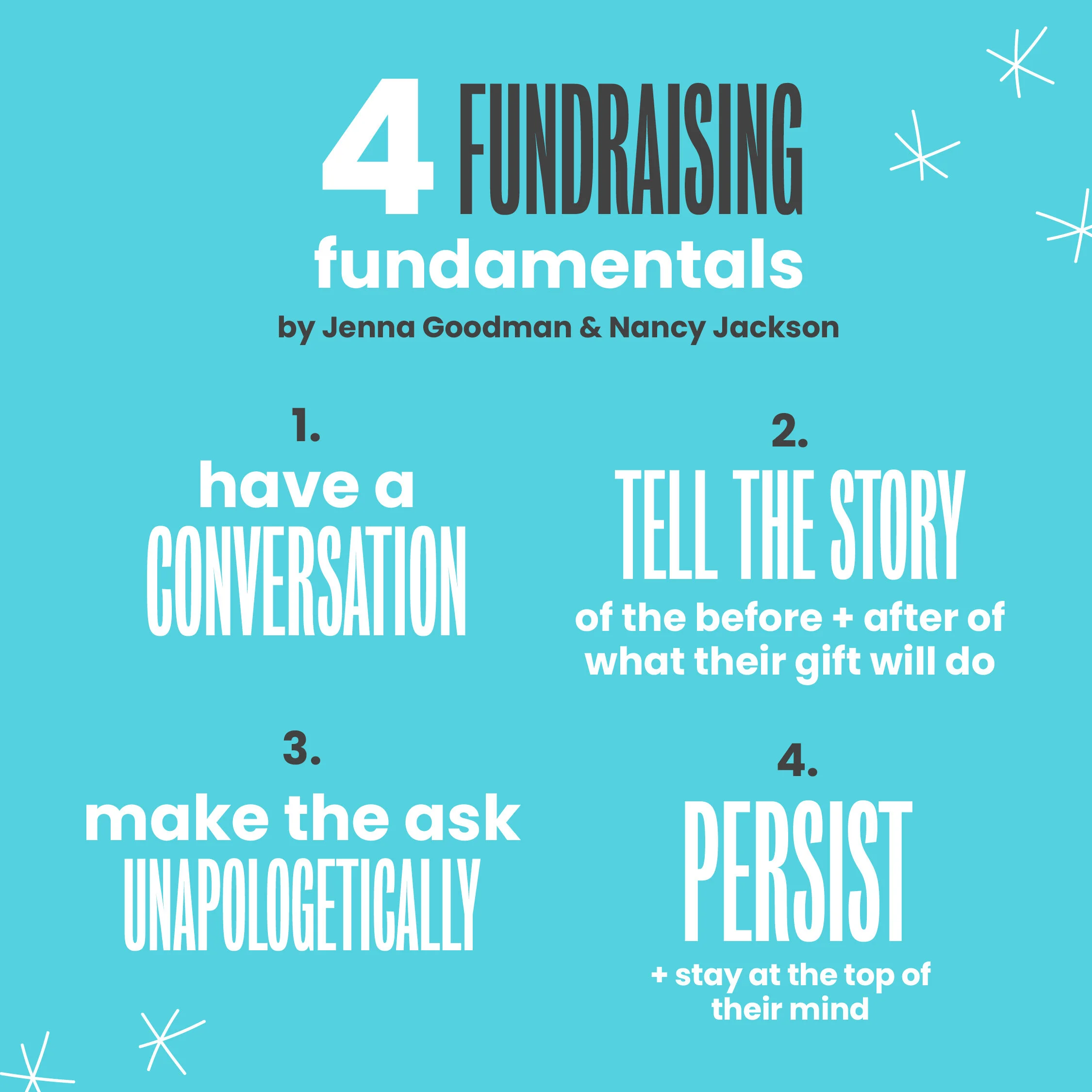 Meet Jenna and Nancy. When you meet two brilliant disruptors who are incredible teachers, good humans and have a heck of a fun time doing it all, it makes you want to come over and join their table - stat! They're chatting through how to remove that icky feeling from asking for money, and these native Kansans are doing it with authenticity and joy. If you're looking to shore up your training and confidence for more solicitations this year, then this episode is for you.