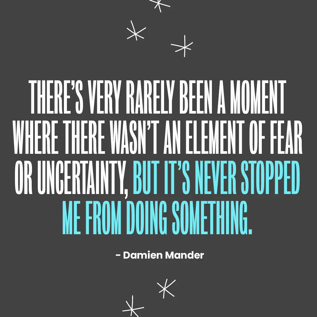 “There's very rarely been a moment where there wasn't an element of fear or uncertainty, but it’s never stopped me from doing something.” -Damien