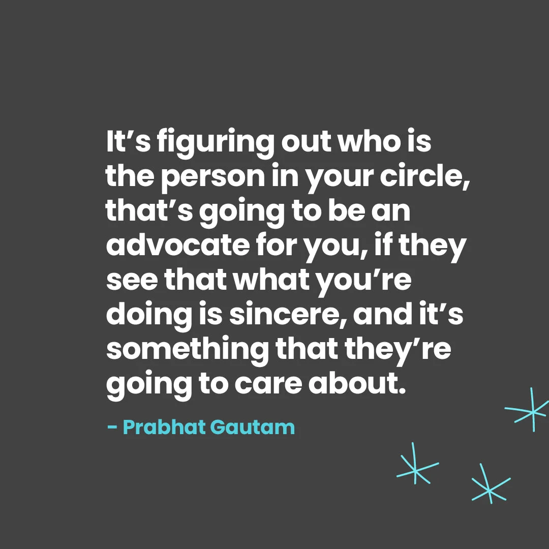 “So it's figuring out who is the person in your circle, that's going to be an advocate for you, if they see that what you're doing is sincere, and it's something that they're going to care about.” -Prabhat