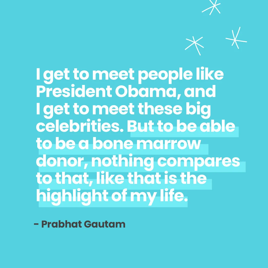 “I get to meet people like President Obama, Jim Greenbaum, and I get to meet these big celebrities. But to be able to be a bone marrow donor, nothing compares to that, like that is the highlight of my life.” -Prabhat