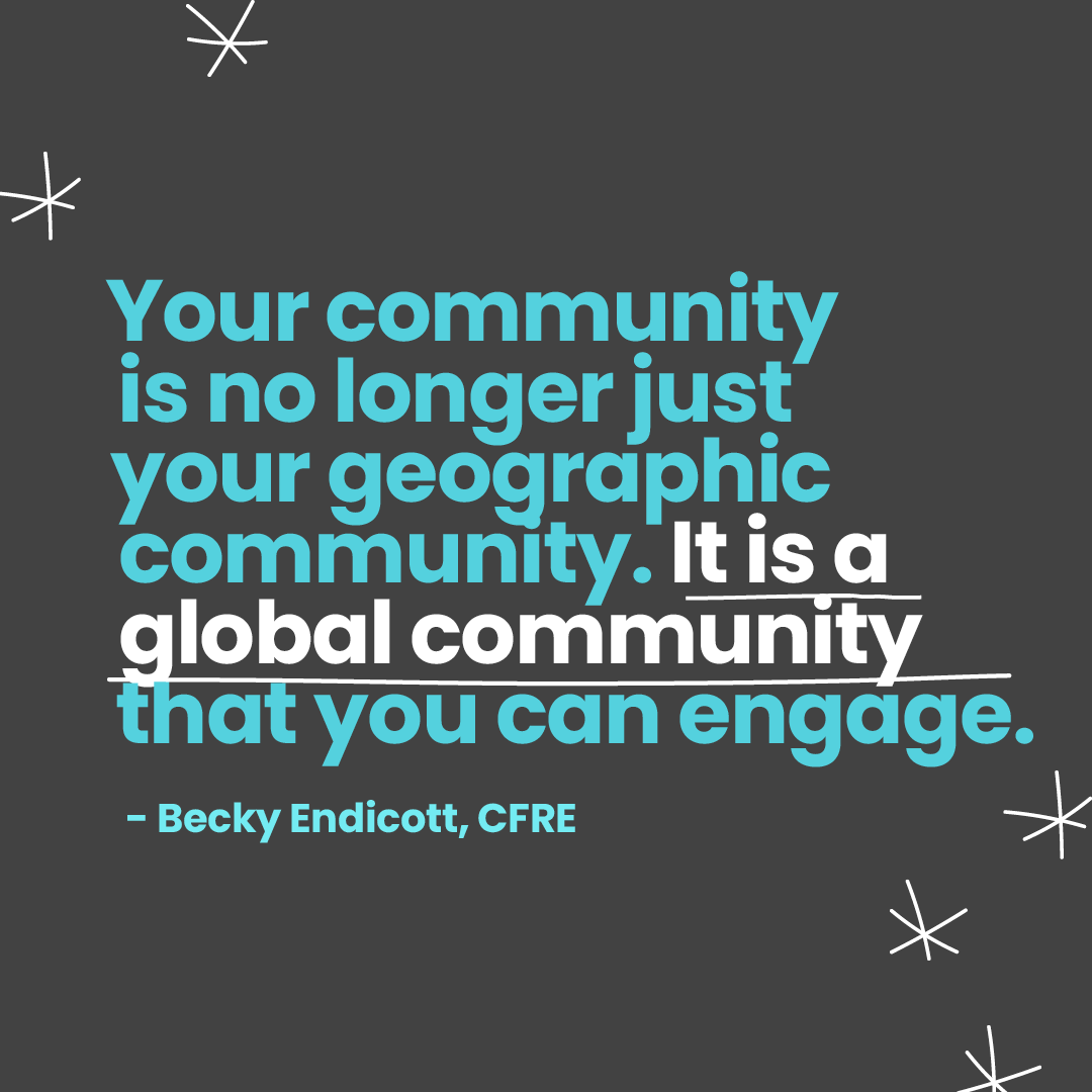 “There are charities who are really leveraging it to its fullest potential, because your community is no longer just your geographic community. It is a global community that we can engage by leveraging these techniques and these tactics.” -Becky