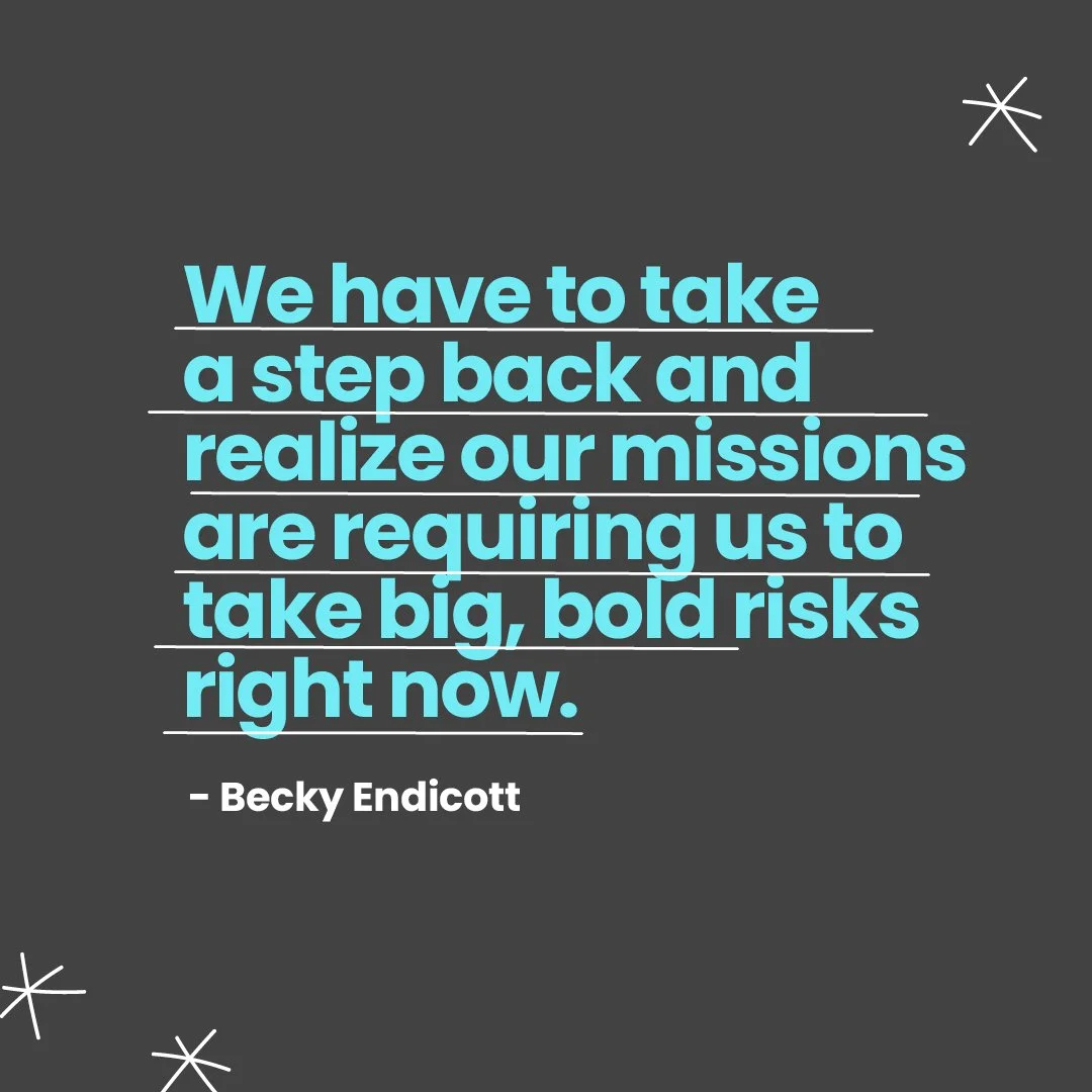 “We have to take a step back and realize our missions are requiring us to take big, bold risks right now. We are taking on the world’s biggest problems, and we have to get comfortable with failure, and lean into our values and dreams.” -Becky
