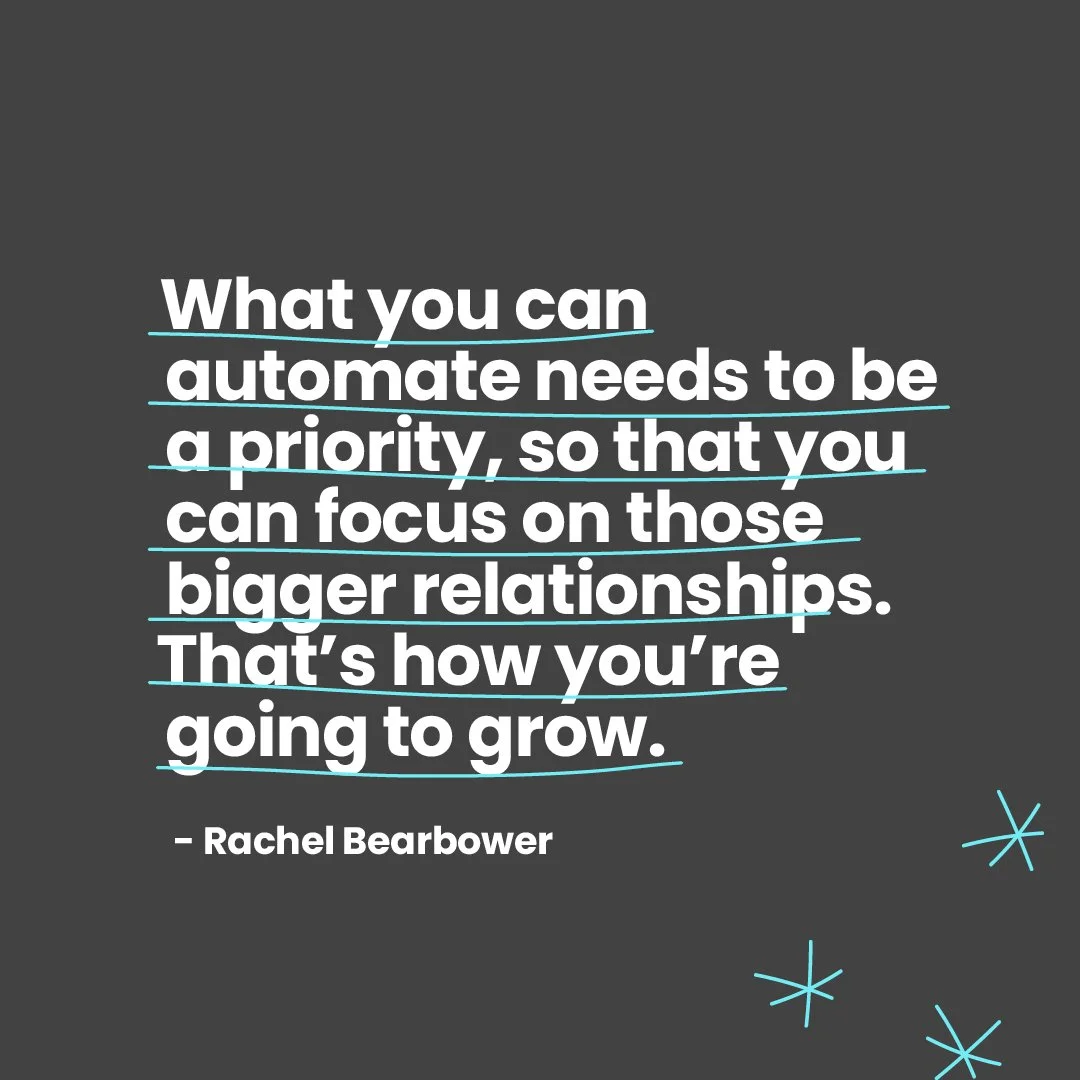 “What you can automate needs to be a priority, so that you can focus on those bigger relationships. That's how you're going to grow.” -Rachel