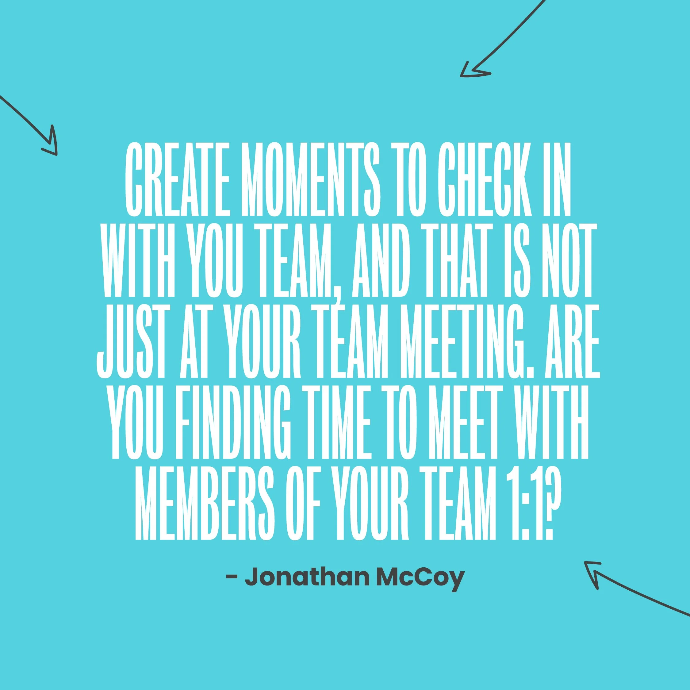 “Create moments to check in with you team, and that is not just at your team meeting. Are you finding time to meet with members of your team 1:1?” -Jon