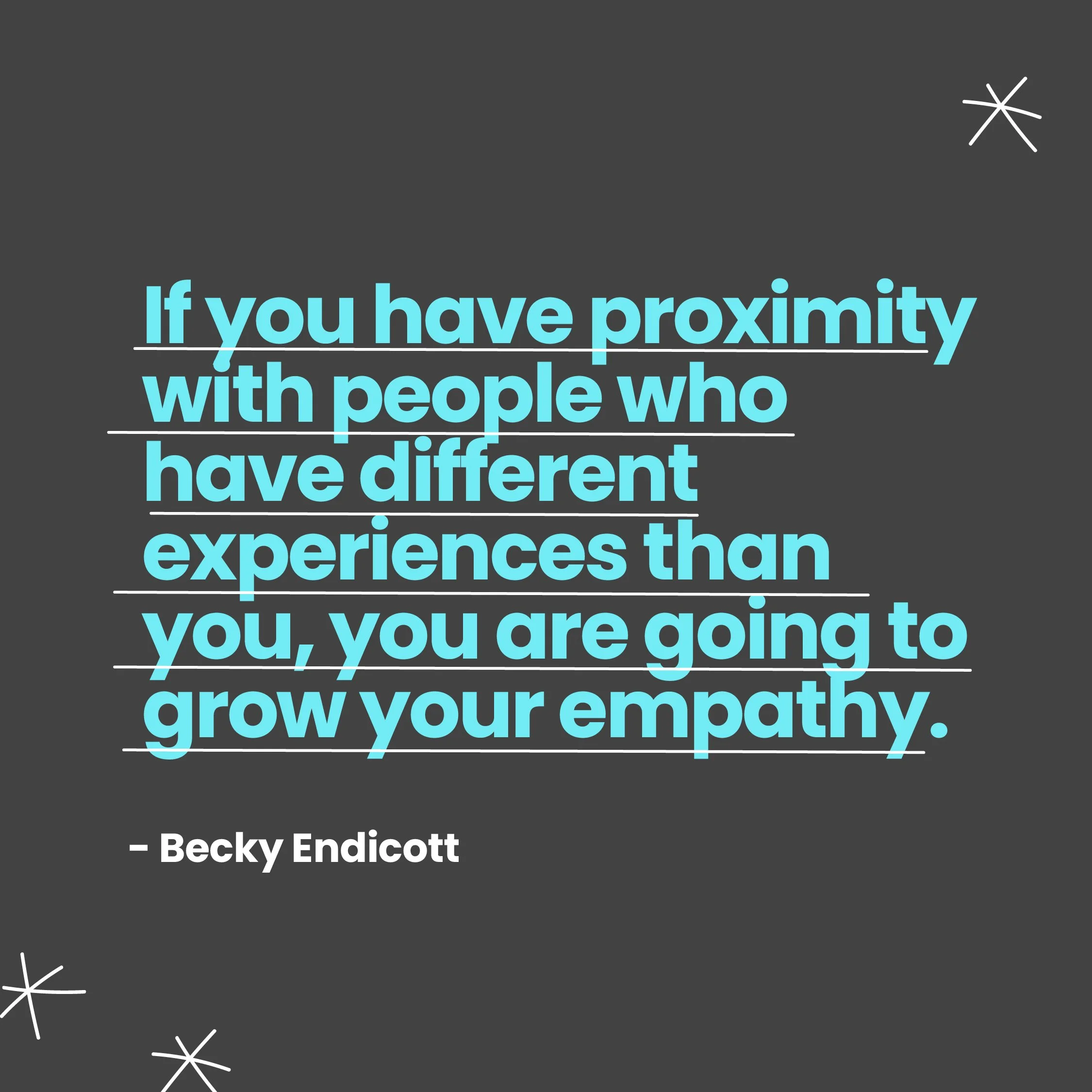 “If you have proximity with people who have different experiences than you, you are going to grow your empathy.” -Becky