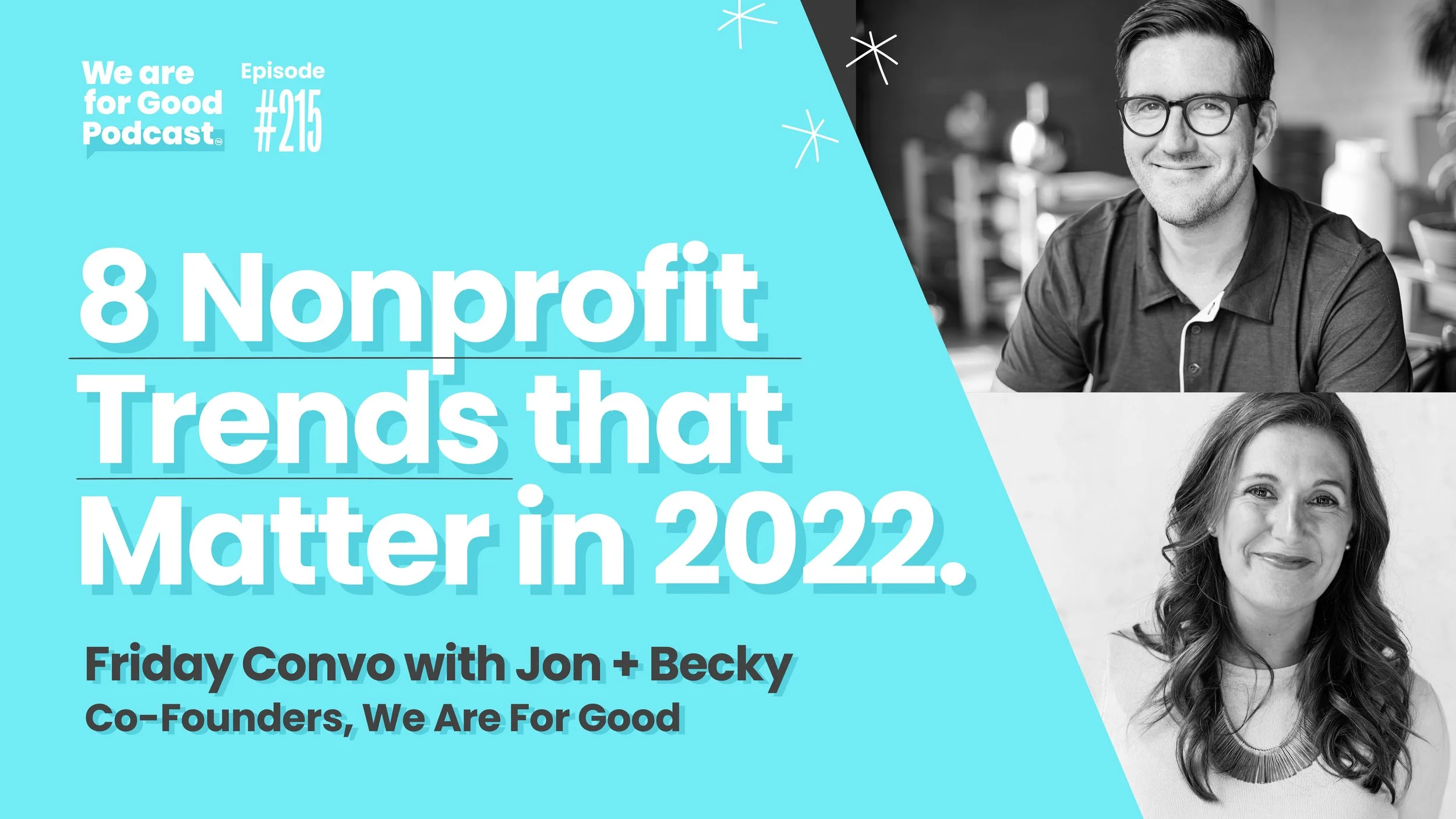 Join Jon and Becky as we break down our 8 Nonprofit Trends That Matter in 2022 that we believe every nonprofit should prioritize moving into the new year. We'll dive deeply into each topic over the course of the coming weeks to ensure you're informed and activated.