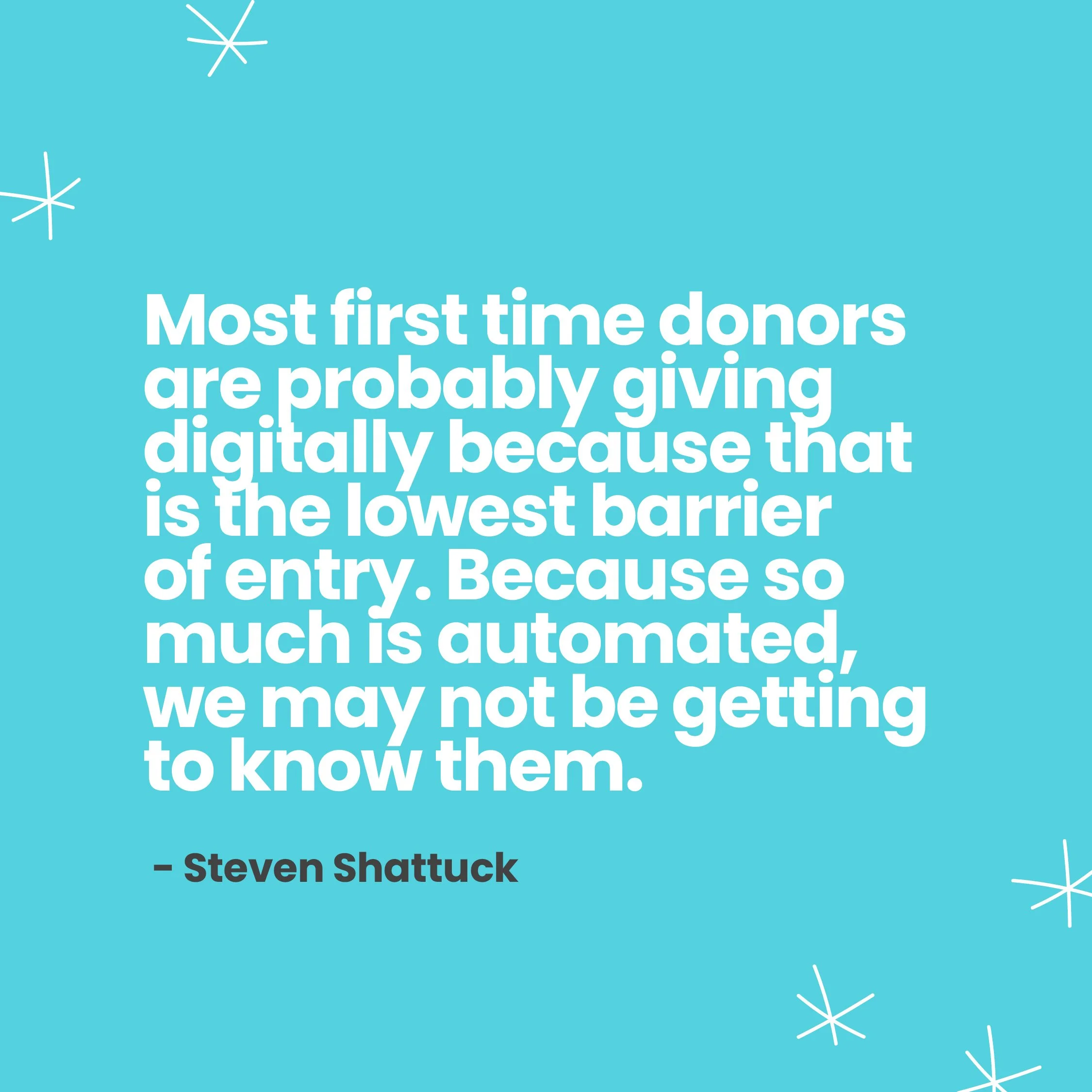 “Most first time donors are probably giving digitally because that is the lowest barrier of entry. Because so much is automated, we may not be getting to know them.” -Steven