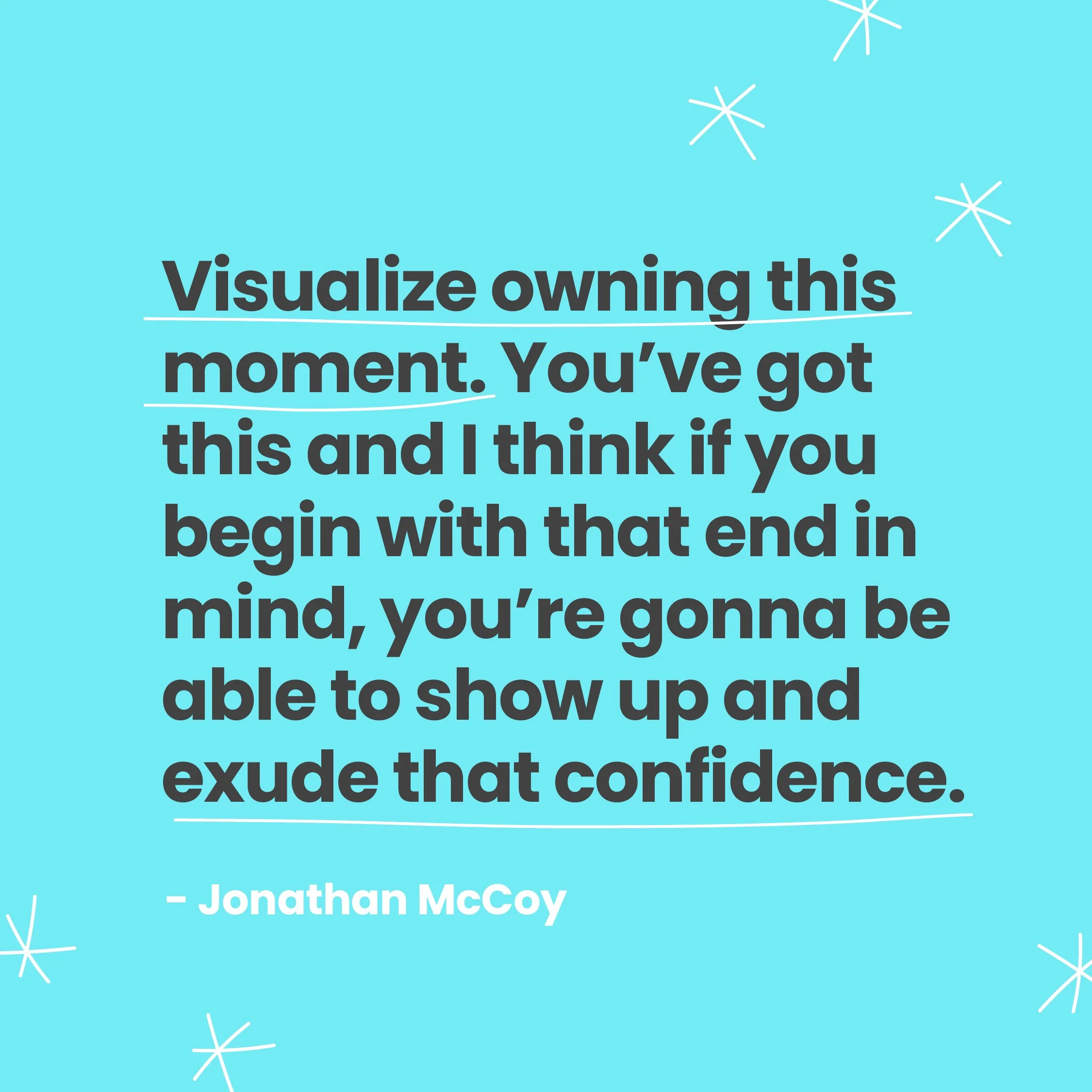 “Visualize owning this moment. You've got this and I think if you begin with that end in mind, you're gonna be able to show up and exude that confidence.” -Jon