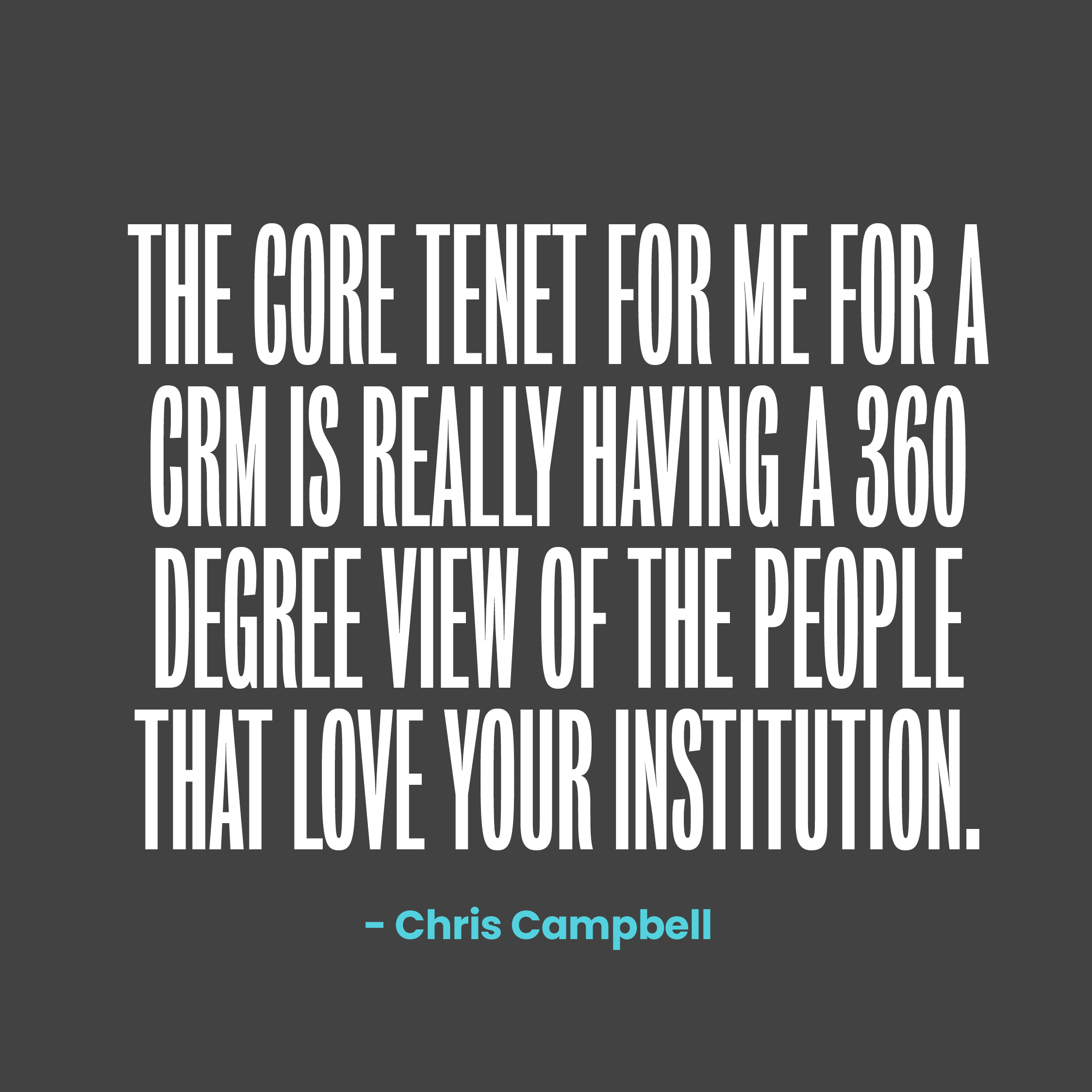 “The core tenet for me for a CRM is really having a 360 degree view of the people that love your institution.” -Chris