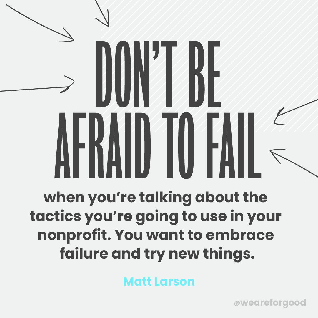 “Don’t be afraid to fail when you’re talking about the tactics you’re going to use in your nonprofit. You want to embrace failure and try new things.” -Matt