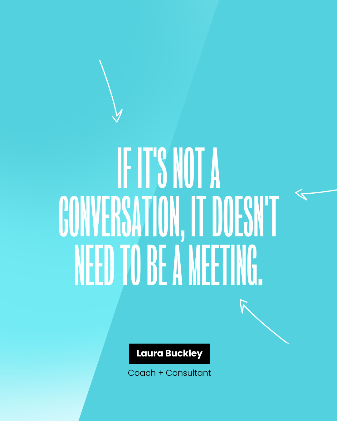 "If it's not a conversation, it doesn't need to be a meeting." - Laura Buckley