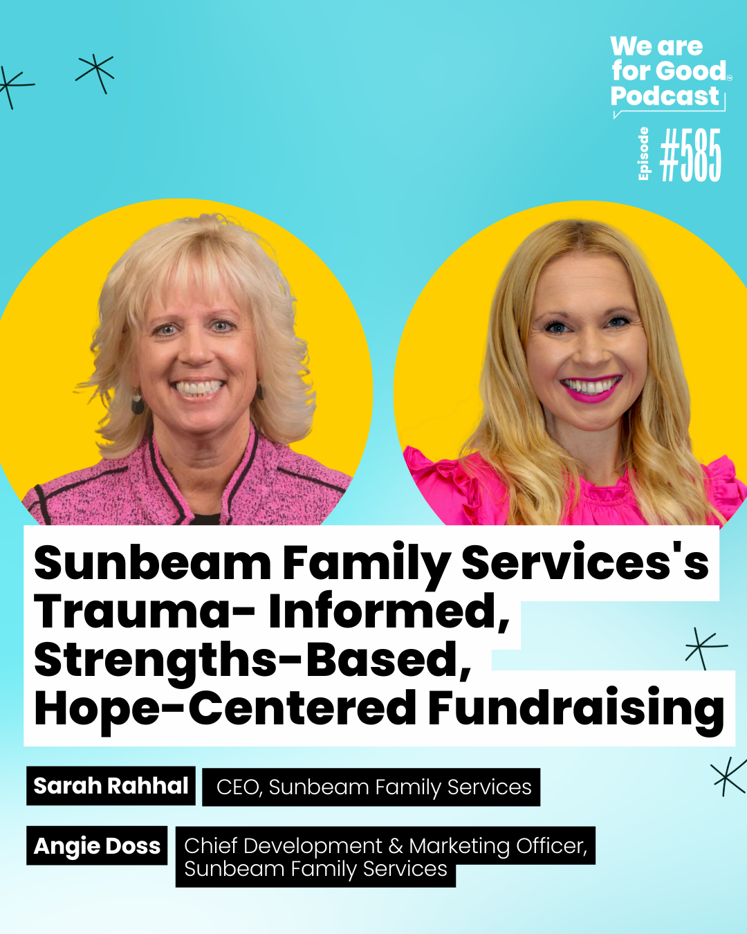 Meet Sarah and Angie. These visionary leaders from Sunbeam Family Services in Oklahoma City are sharing how they’ve woven trauma-informed, strength-based principles into every part of their org. From rethinking fundraising and storytelling to centering community relationships with intentional language and deep listening, they’re showing how nonprofits can truly build a culture of care (that’s filled with hope!). Tune in to discover how to embed these transformative principles into your own work.