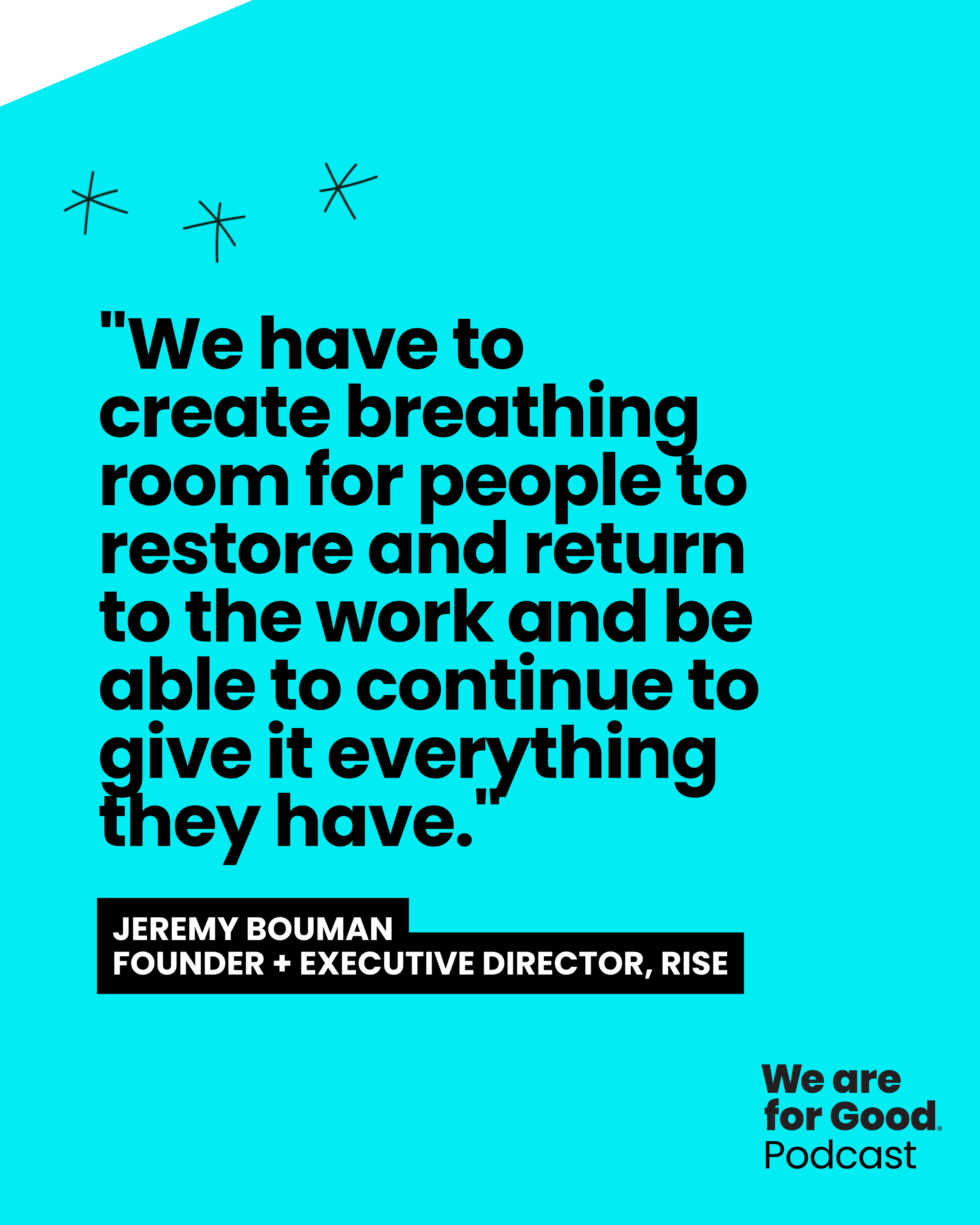 "We have to create breathing room for people to restore and return to the work and be able to continue to give it everything they have." -Jeremy
