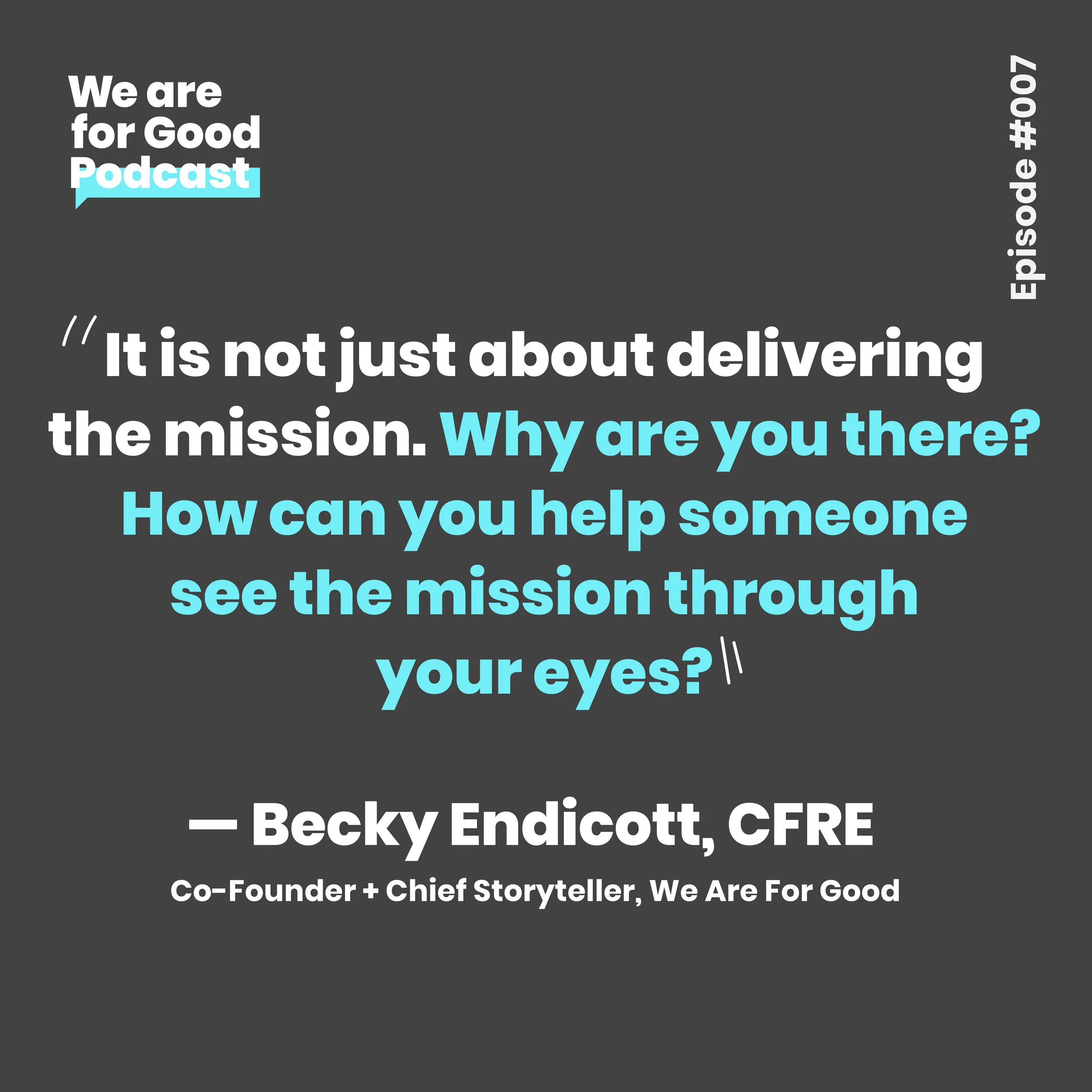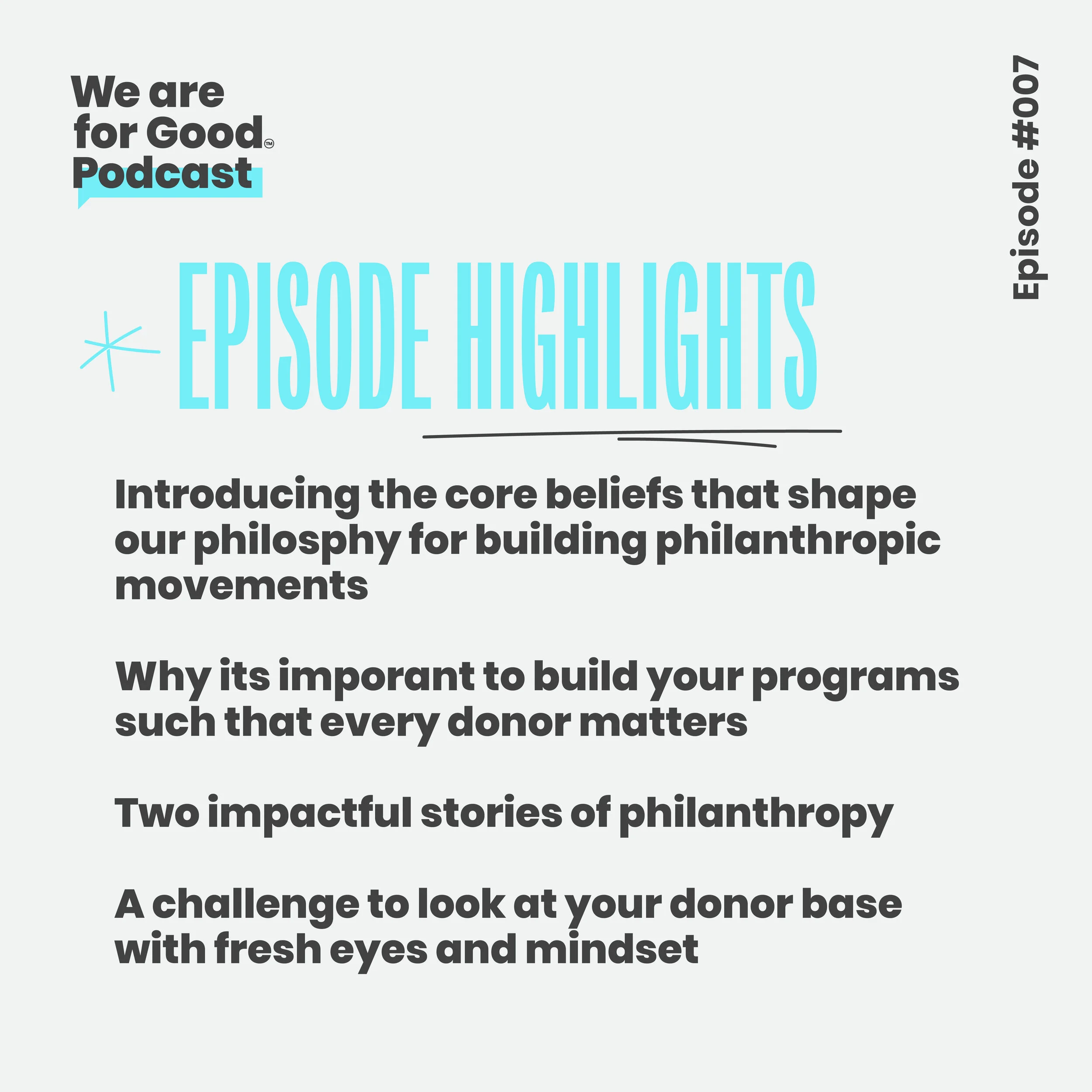 This episode is 1 of 7 where we unpack our core beliefs that lead to revolutionizing your fundraising. Explore all the episodes and learn more about our car beliefs here: We are for Good’s Core Beliefs