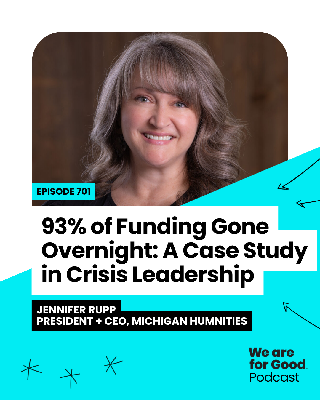 At 4am on April 3, 2025, Jennifer Rupp's phone wouldn't stop buzzing. 93% of Michigan Humanities' budget. Gone overnight. What happened next is a story about crisis leadership, radical transparency, and why connection isn't a soft strategy. It's the only strategy. 🙏