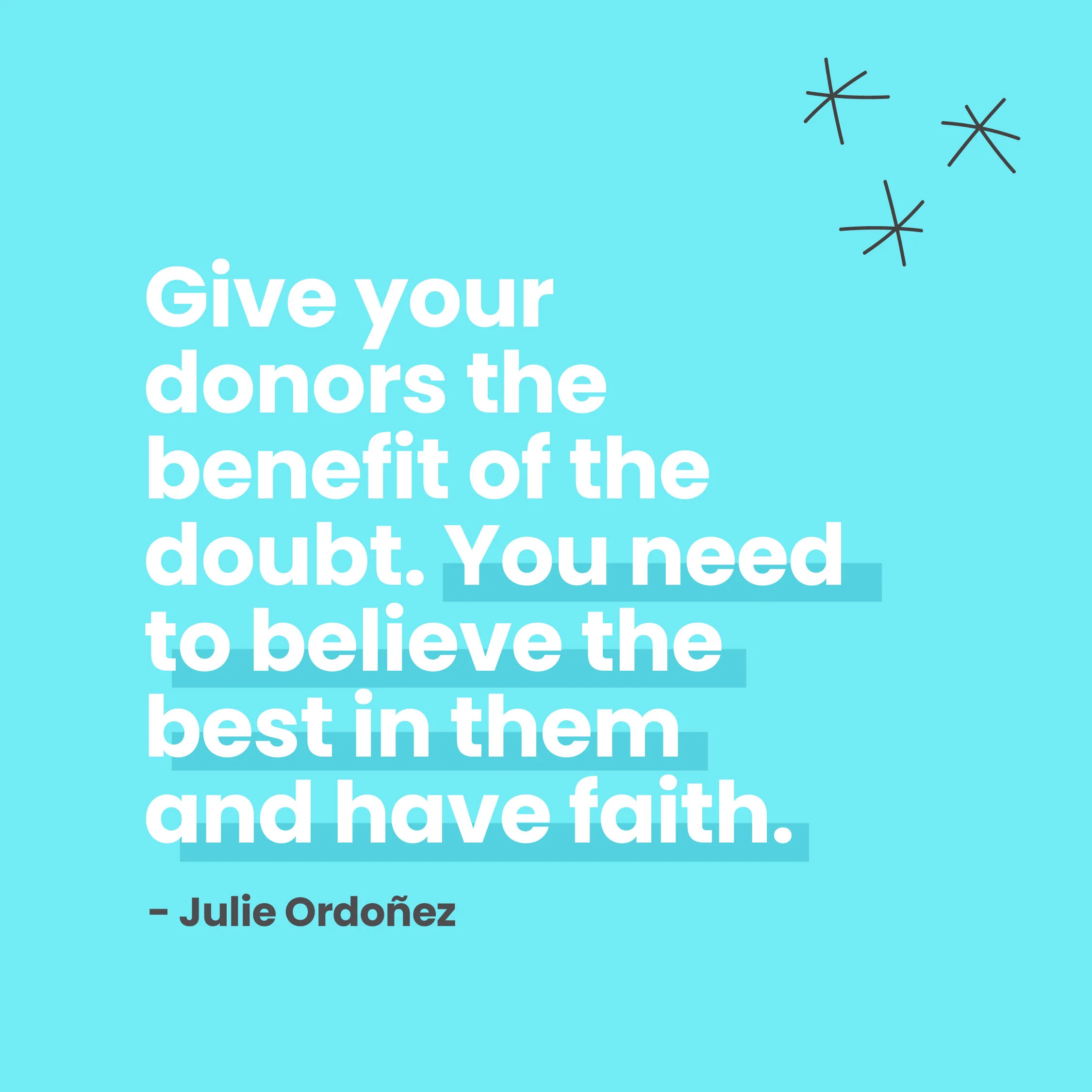 “You need to give your donors the benefit of the doubt. You need to believe the best in them. You need to have faith.” - Julie